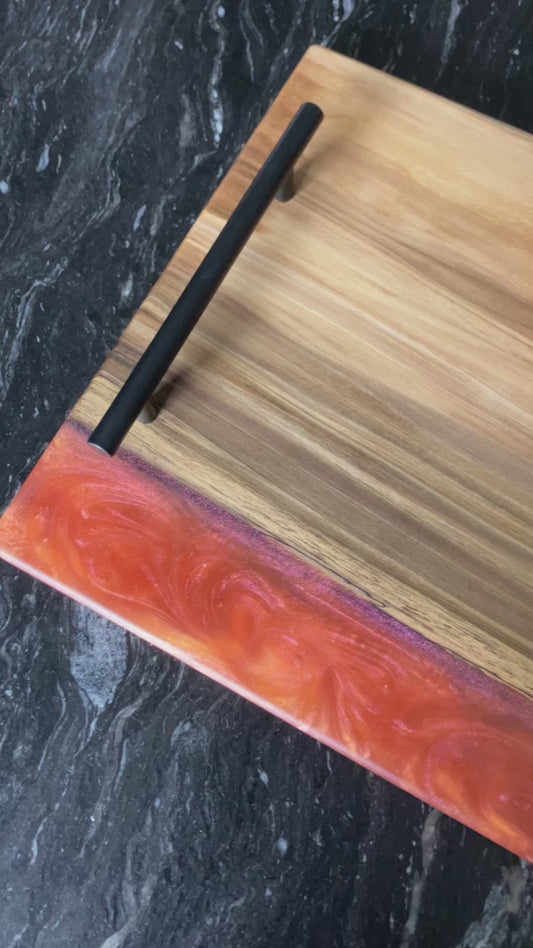 Rainbow Poplar with Red/Orange Epoxy Serving Set