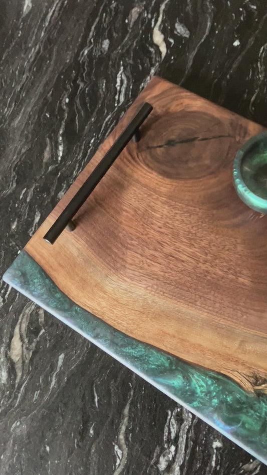 Walnut with Blue/Green Colorshift Epoxy Serving Set