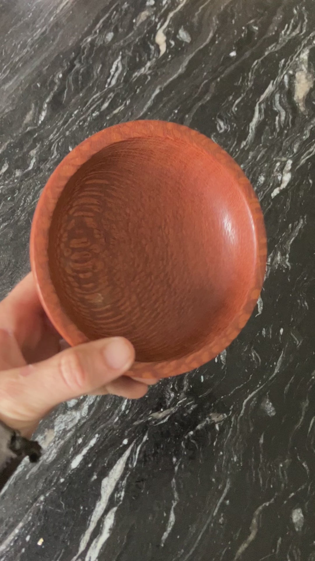 The bowls are hand turned on a lathe. This bowl is 6" in diameter and 2" tall. Each piece is unique and one of a kind.