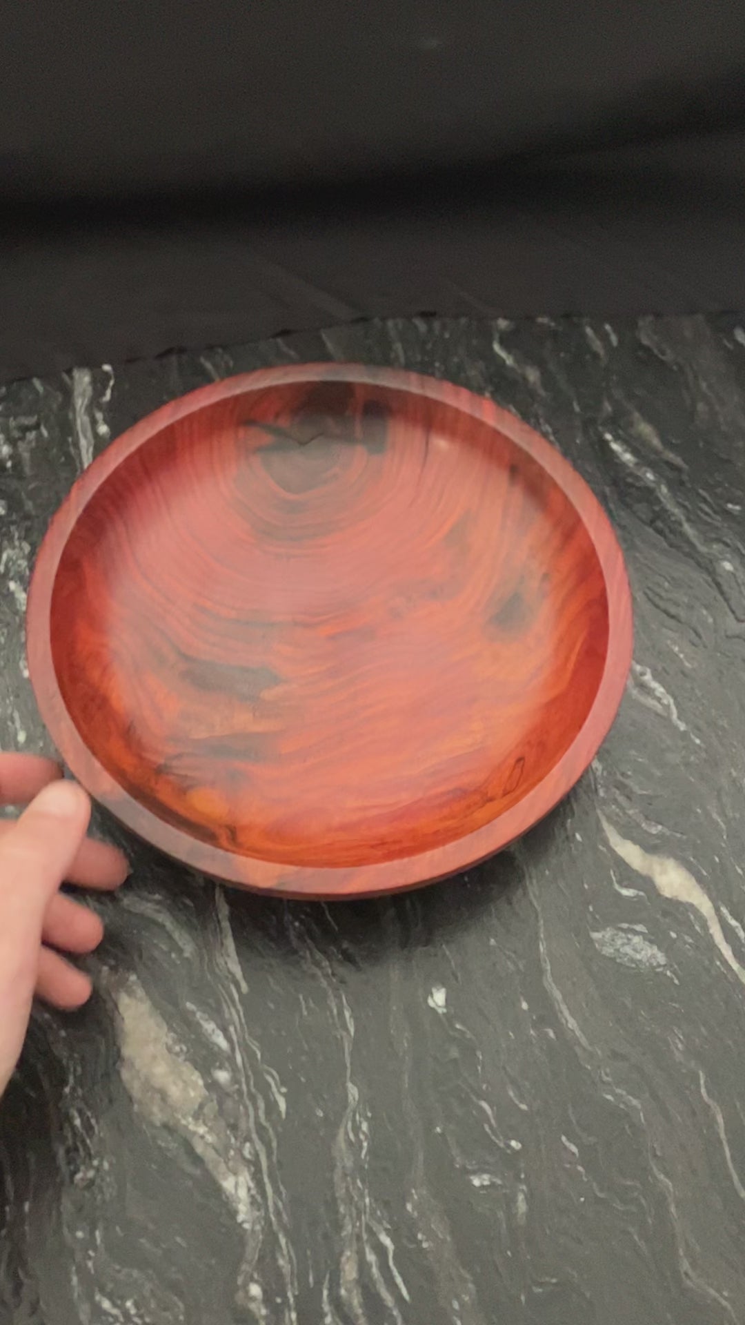 The bowls are hand turned on a lathe. This bowl is 9" in diameter and 2" tall. Each piece is unique and one of a kind.